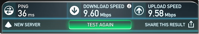 ▼趁So-net上網卡的流量還沒用光前,也在Tokyo Dome Hotel進行測試,成績果然好很多,幾乎是雙向9.6Mbps。