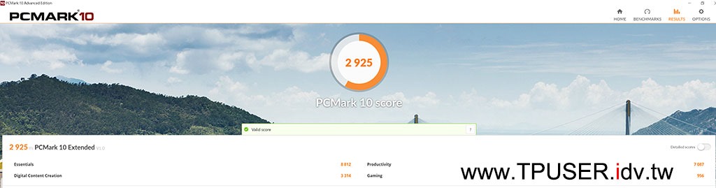 P320 Tiny的「PCMark 10 Extended」成績為2925分,四個模組的個別成績如下: