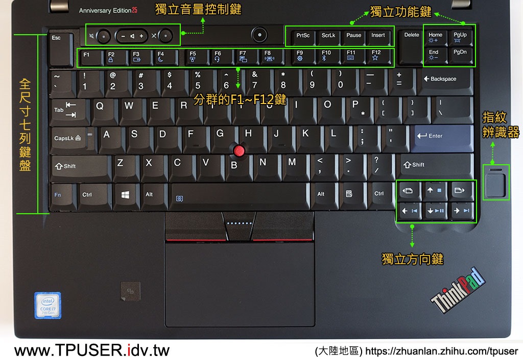 TP 25採用了大家期盼已久的七列鍵盤,主要特色如下圖所示: