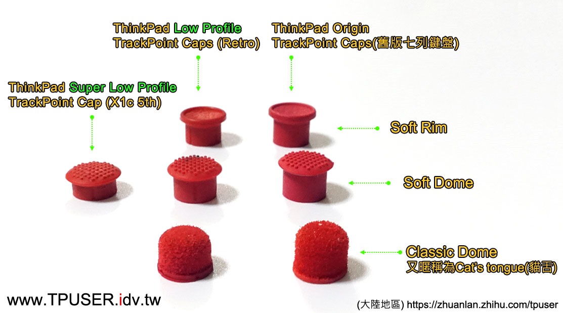 後來ThinkPad配合Intel「Ultrabook」超輕薄筆電規範,推出符合Ultrabook規範的T440等機種,除了開始採用六列鍵盤,也進一步將鍵深縮短為2.0mm,此時原廠推出新一代的小紅點橡膠帽「ThinkPad Low Profile TrackPoint Caps」,將高度降為5.07mm,只是僅提供Soft Dome造型。這次為了配合TP 25的推出,才特別恢復了Classic Dome(貓舌)版與Soft Rim的Low Profile橡膠帽。