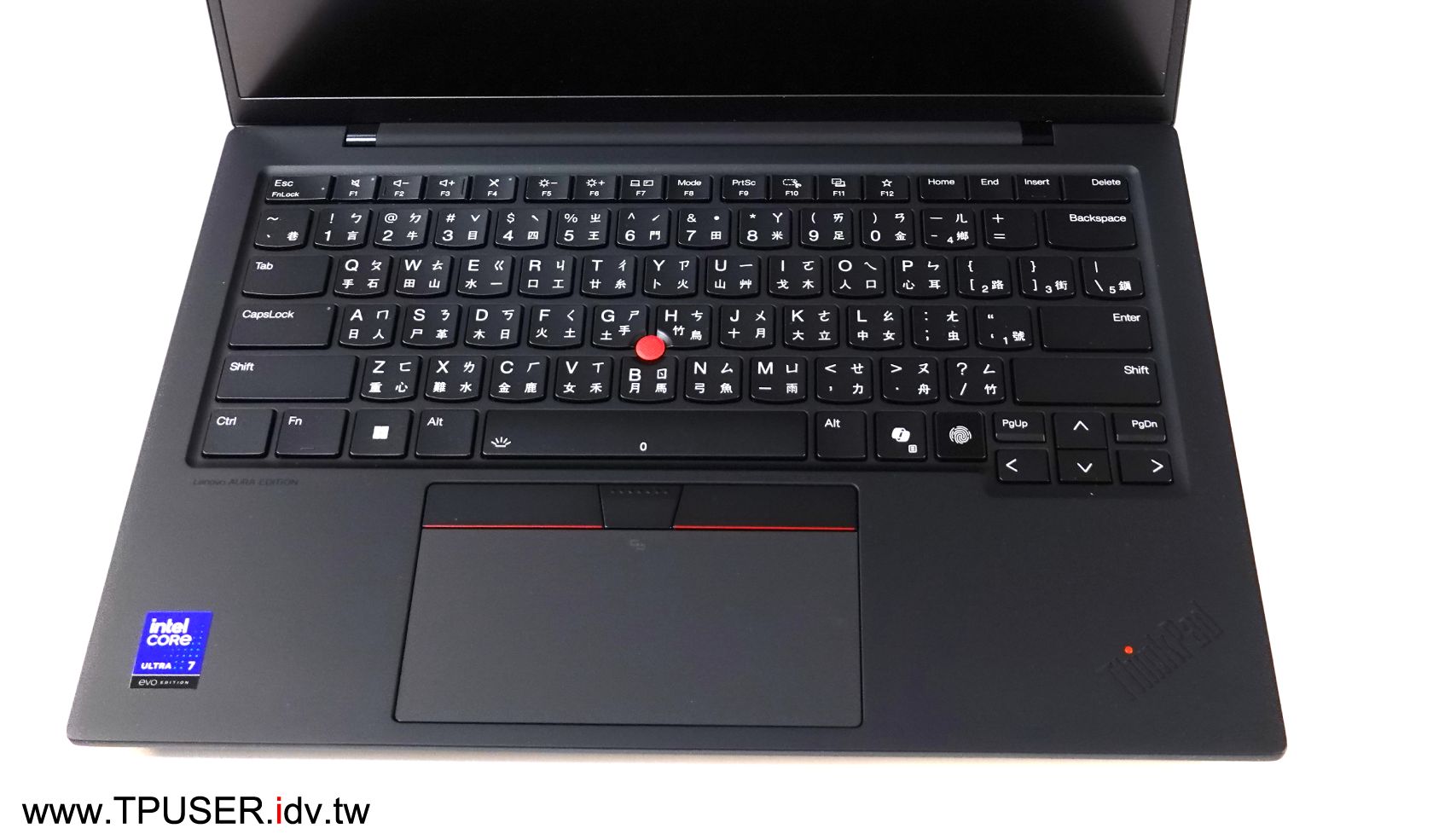 ▼X1 Carbon Gen13鍵盤跟前一代Gen12的設計有點不同,主要將鍵盤右下方的「Ctrl鍵」換成「Copilot鍵」,導致主機只剩下鍵盤左下方的「Ctrl鍵」可用。另一方面,X1 Carbon Gen13的電源鈕移至機身右邊,因此特別在「Copilot鍵」的右邊裝上指紋辨識器(雖是鍵帽形狀但其實按不下去,手指輕觸即可)。至於其他款ThinkPad由於電源鍵可以整合指紋辨識功能,因此無須犧牲掉右邊的Ctrl鍵。