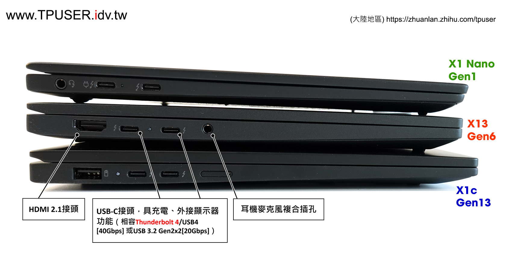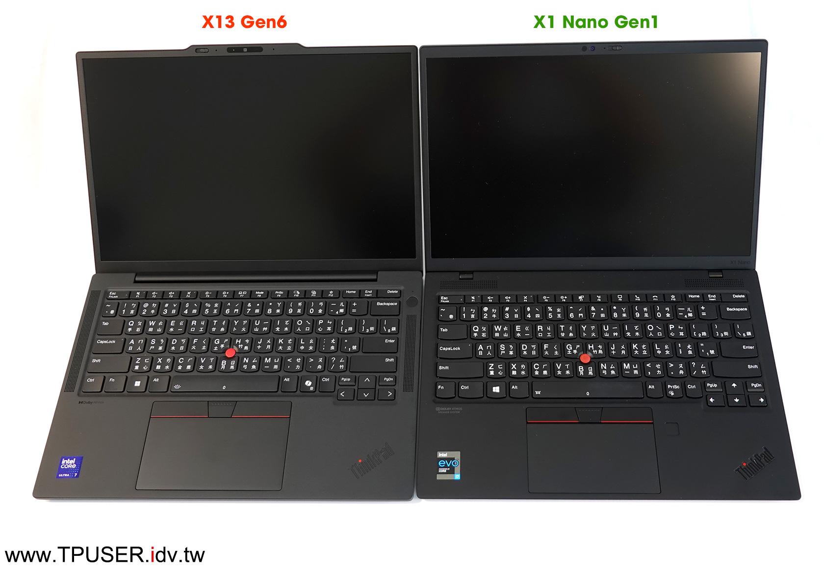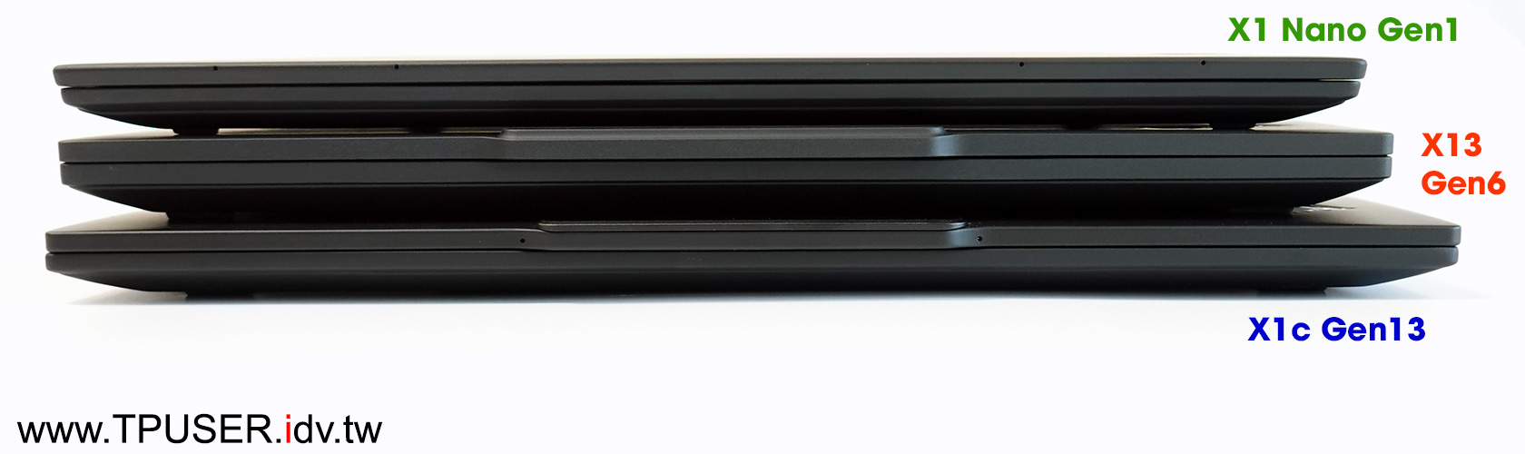 ▼對站長個人而言,X13 Gen6猶如之前「X1 Nano」的繼承機種。因為名聞遐邇的「X300系列」後續繼承者應該是X1 Carbon系列,反觀X1 Nano當年以13吋螢幕、低於一公斤的驚人規格問世,雖有擴充性、電池續航力等問題,推出三代後停產,但迄今仍受許多網友愛戴與懷念。下圖是站長仍持有的X1 Nano Gen1與新銳的X13 Gen6以及X1c Gen13(Lunar Lake)對比特寫。