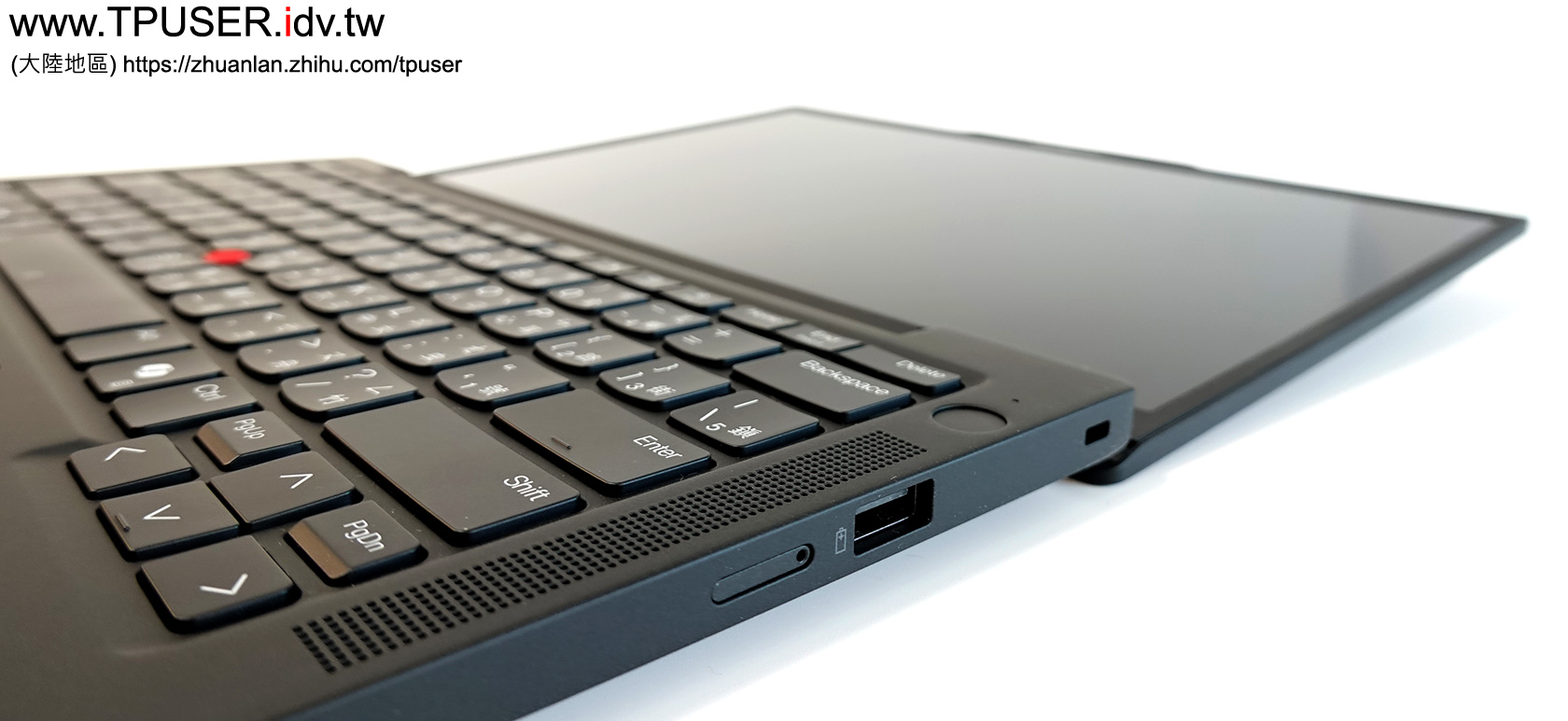 ▼下圖是機身後方特寫,由於X13 Gen6與X1c Gen13都改用One Bar Hinge了,所以只有X1 Nano還能將Nano SIM卡槽放在機身後方。