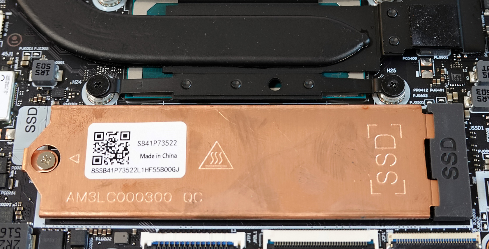 ▼下圖是X13 Gen6的SSD散熱片特寫。關於SSD傳輸規格,站長在此詳細補充說明,免得網友誤會。X13 Gen6只有Intel平台而且採用「H結尾」型號的處理器,才會支援PCIe 5.0 x 4 SSD,例如站長自購這台所使用的Core Ultra 7 255H。只是坊間零售的X13 Gen6即使是搭配Core Ultra 7 255H或Core Ultra 5 225H處理器,通常仍是預載PCIe 4.0 x 4 SSD。網友到Lenovo-tw官網CTO客訂時,在預算許可下,可考慮升級安裝更高速的PCIe 5.0 x 4 SSD。或許有的網友會擔心PCIe 5.0 x 4 SSD是否會超耗電,站長在下一篇文章中會實測給大家看。