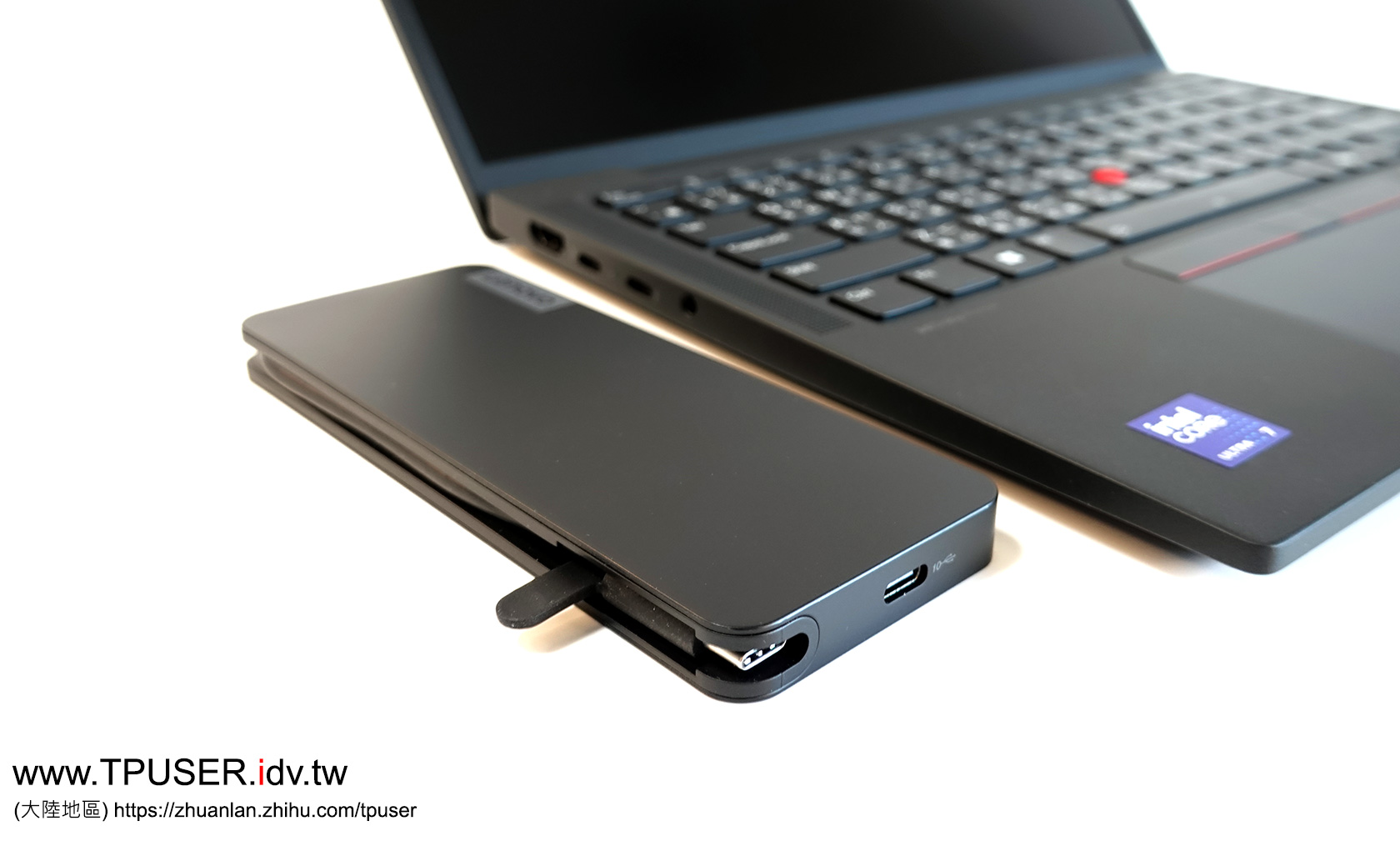 ▼當年X1 Nano Gen1推出時,原廠知道主機本身的連接埠太少,所以當年有推出專屬的PortReplicator(小型整線器,現已停產),這次X13 Gen6推出時,反而是躬逢其盛,原廠正好推出了兩款小型Travel Dock(旅行用擴充基座),站長正好在此向大家介紹。