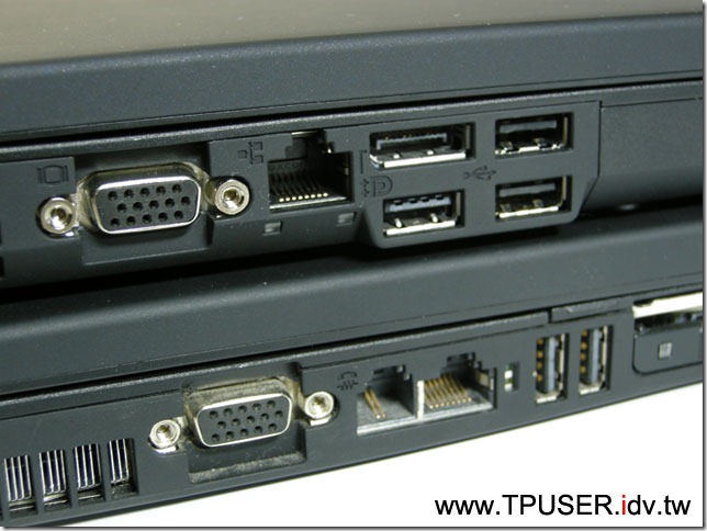 從T40-Series開始,為了讓主機能安裝9-cell高容量電池,便將電池採後置設計,自然壓縮到主機後方能擺設的連接埠數量,因此一直到T400都將Modem及其他連接埠擺在主機兩側。看到全新設計的T410將Modem又擺回主機後方不禁讓人回憶起這十年來的變化,同時也感受到Modem數據機在特定領域上的重要性。或許有的網友一接觸網路時已經是透過乙太網路RJ45埠上網,但ThinkPad仍讓Modem在「ThinkPad Classic」機種占有一席之地呢。